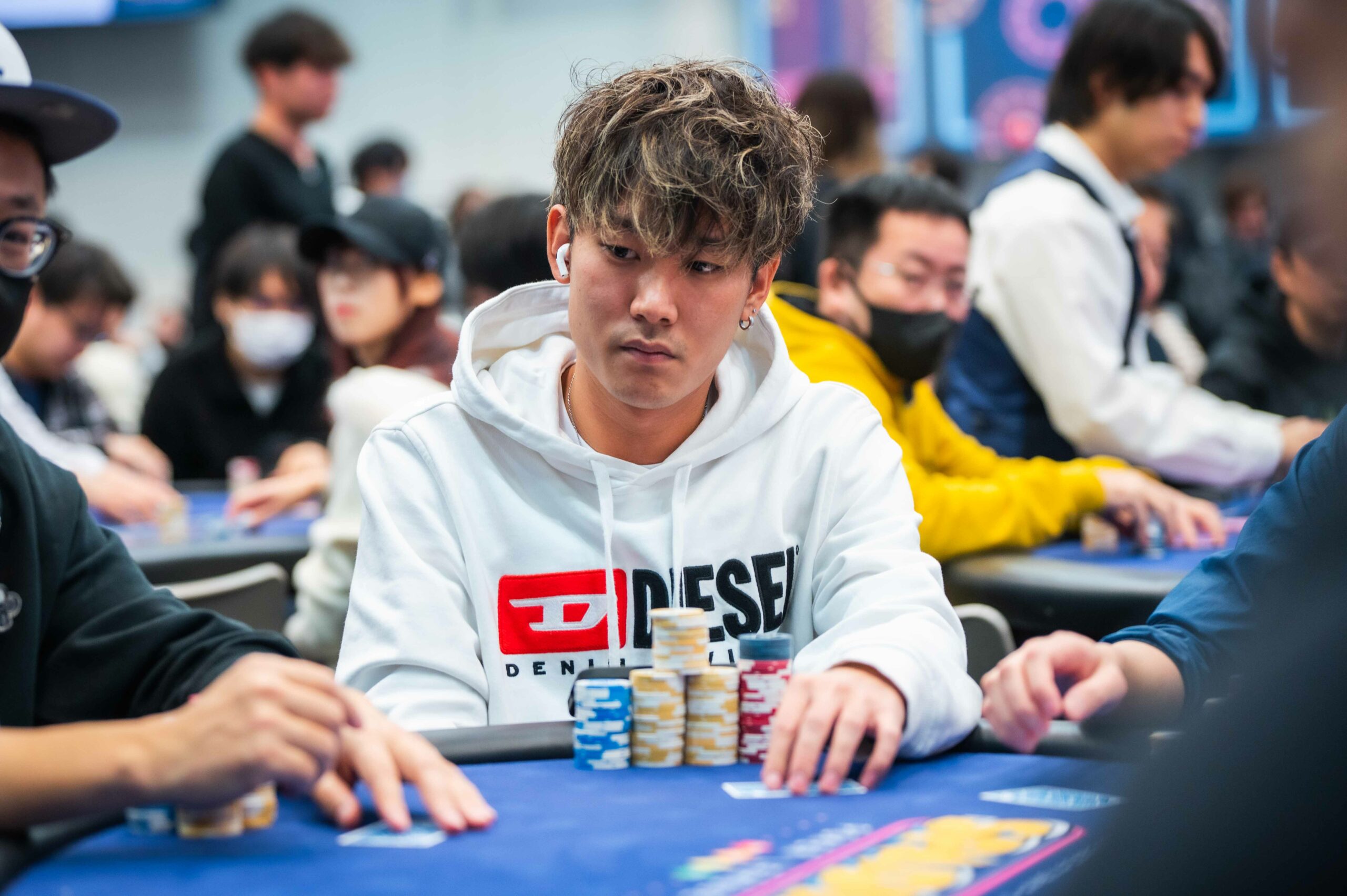 Day 1もDay 2も、最初から最後までアベレージの4倍くらいのスタックをずっとキープできていたところですね。普段の大型イベントだと必ずといっていいほどどこかで苦しい時間帯が来るんですけど、今回は本当に動くたびに噛み合ってくれたというか、展開に逆らわず自然とチップが増えていきました。序盤は特に、フロップの方向性や相手のレンジとのぶつかり方が良くて、ベットしたところでしっかり取れる、ショウダウンに行っても強い、といった場面が続きました。大きく無理をしなくても勝手にスタックが積み上がるような感覚で、精神的にもかなり余裕を持ってプレーできていたと思います。Day 2に入ってからもその流れは大きく崩れず、危険なスポットに無理に踏み込む必要もなく、ハンド選びやレンジ調整も落ち着いて判断できました。トーナメント全体を通して、ここまで一貫して安定した状況を維持できたのは自分の中でもかなり珍しかったですね。