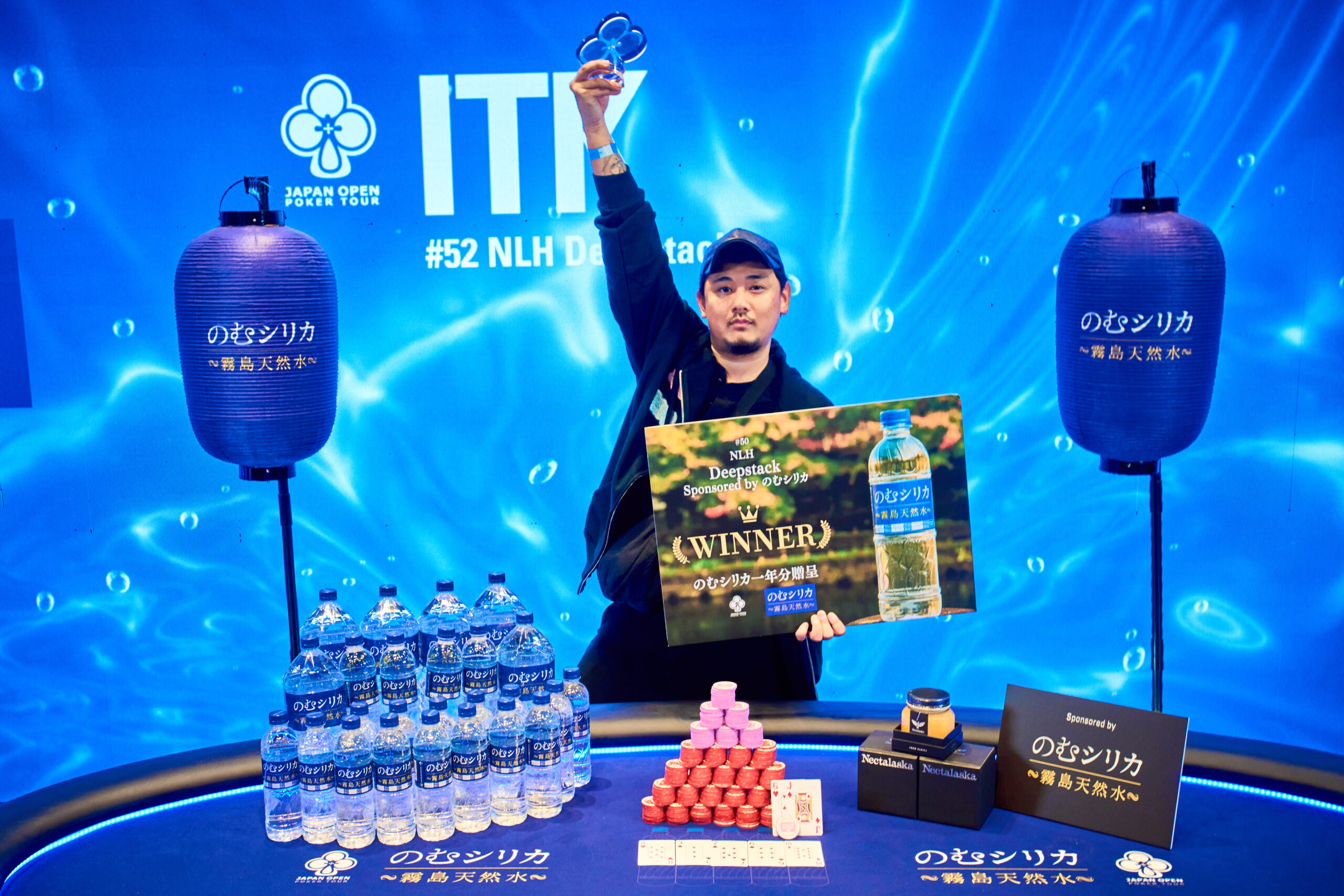 すごく良かったです。自分は普段からポーカー中は「水しか飲まない」と決めているので、「のむシリカ」はまさに理想でした。飲み放題だったので、ずっと飲んでいました(笑)。そのおかげで、長時間のプレイでも頭が冴えて、集中を切らさずにいられたのを実感しました。味や香りのある飲み物だと、集中が途切れてしまう気がして。JOPTでは、毎回必ず「のむシリカ」を飲んでいますね。五感をブレさせないための自分なりの集中法です。はちみつ「Nectalaska」もエネルギー補給にちょうど良くて、自宅で味わうのを楽しみにしています。知り合いに配ったりもする予定です。健康を意識した協賛は、プレイヤー目線でも本当にありがたいと思います。