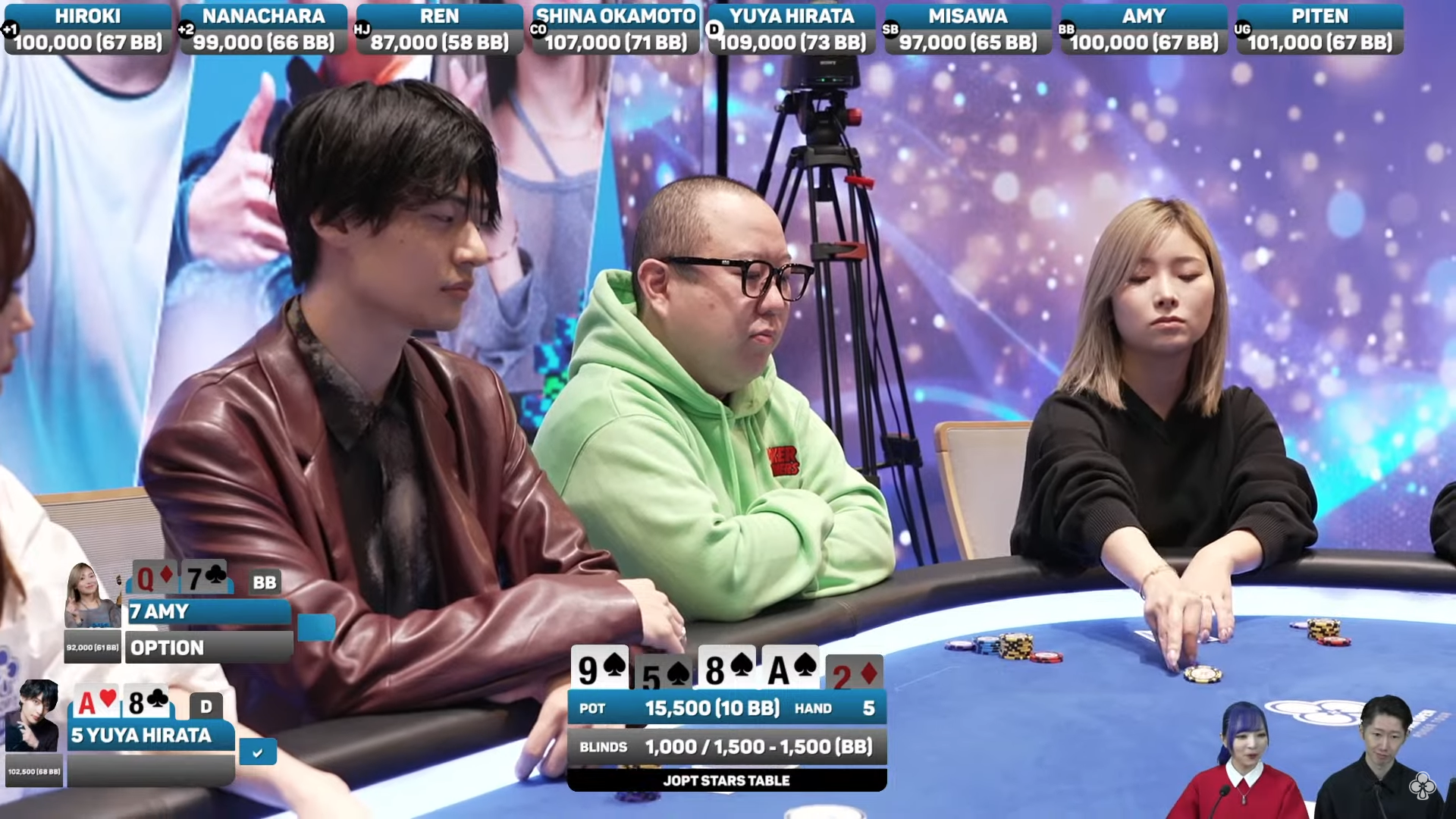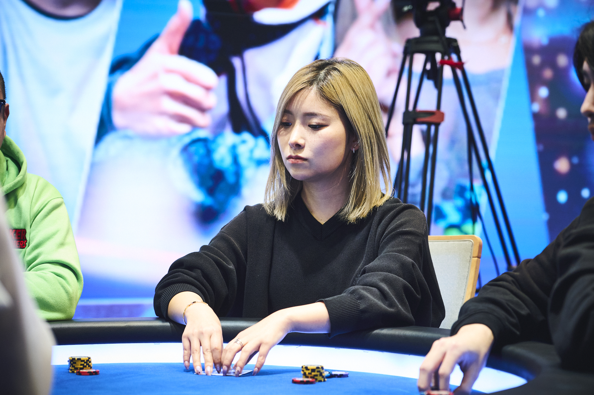 そうですね。配信卓だから緊張するというよりは、参加メンバーの皆さんが、私がポーカーを始めた頃から知っているお名前の方ばかりだったので…。実績のある強いプレイヤーさんなんだろうなと思っていました。でも、緊張よりも「楽しみだな」「ワクワクするな」という気持ちの方が大きかったですね。