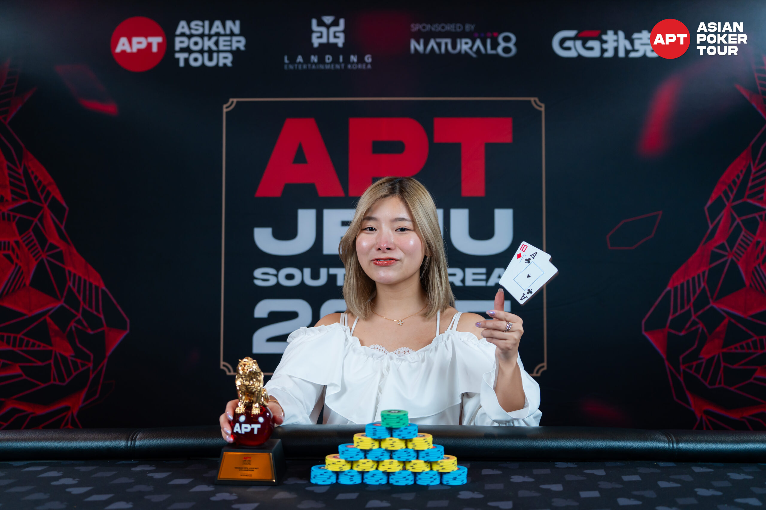 ありがとうございます。実は、今年の初めに「とにかくトロフィーが欲しい!」という目標を立てたんです。それで、どうすれば一番優勝しやすいかを考えて、APT jejuのWomen's Eventに狙いを定めました。APT jejuはリゾート地で参加人数も比較的少ないだろうと読んで、優勝することが出来たので、まさに「作戦勝ち」でした(笑)。