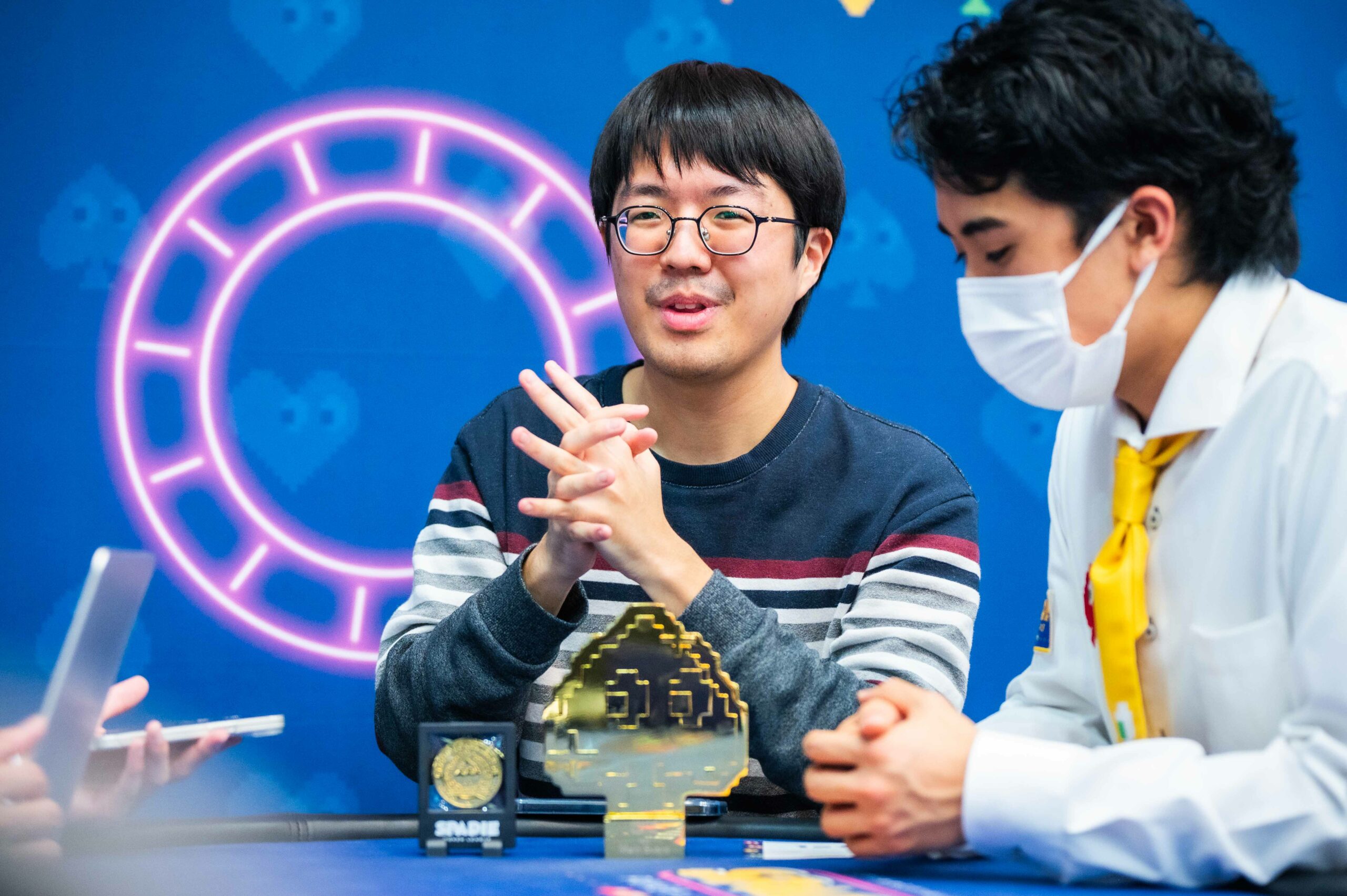 私は理論をそこまでたくさん勉強したタイプではないので、すごく単純に戦略を立てました。「こういうレンジではオールインをして、こういうレンジならフォールドしよう」と。代わりに、途中で状況が悪くなった時に、その戦略から外れようとしてしまうのですが、それを我慢するのが大事だと思いました。途中で中途半端なハンドが入ってオールインを検討したのですが、今振り返ってみれば、もしその時オールインしていたら飛んでいた状況が結構多かったんです。それをうまく避けていけた、そういう忍耐が重要だったし優勝につながる要因であったと思います。