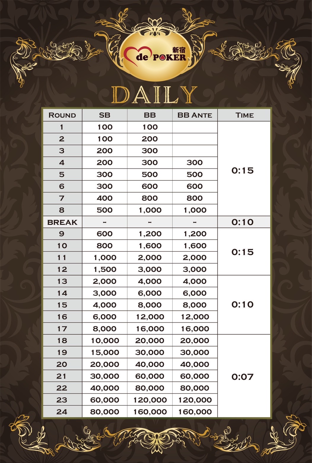 | ゲーム | 15,000点 / ノーリミット / テキサスホールデム / 15-10min / Others |