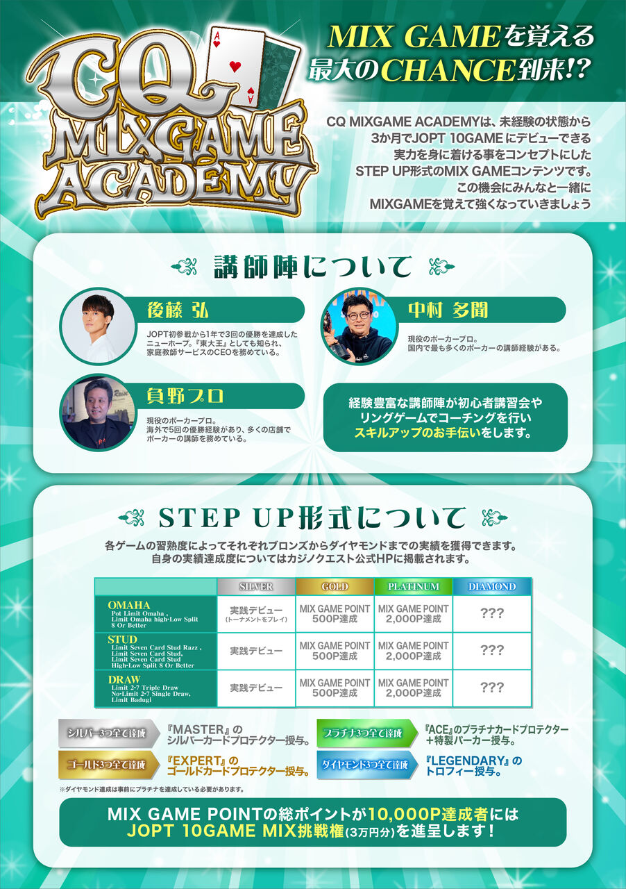 MIX GAME POINTは、STEP UP形式の当コンテンツにおいてGOLDランクやPLATINUMランクに昇格するのに必要なポイントで、1万ポイント達成でJOPT 10GAME MIX(3万円分)への挑戦権を獲得できます。