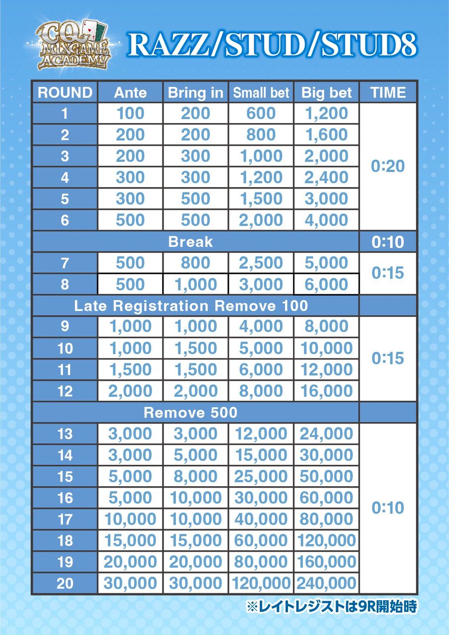 | 11/4(火) | 18:00 | 【SPADIE上位2名2枠】CLT Original Tournament | Casino Live Tokyo |