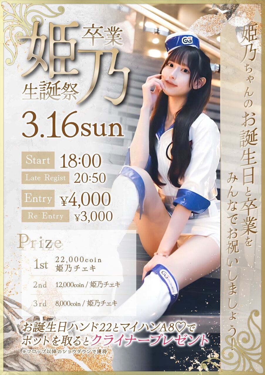 | 11/15(土) | 17:00 | 【上位1名 SPADIE 39th Disco☆Twins -Couple Tag Team- Voucher】H... | GoodGame Poker Live Shinjuku |