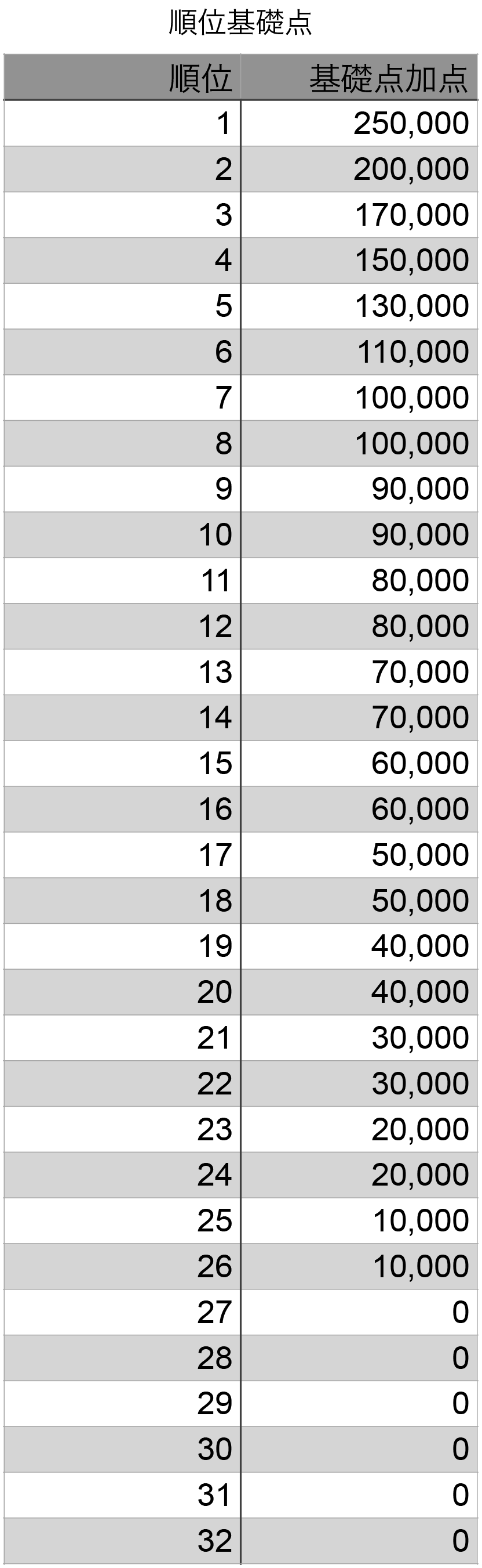 スタートスタック:順位基礎点 + 順位ポイント