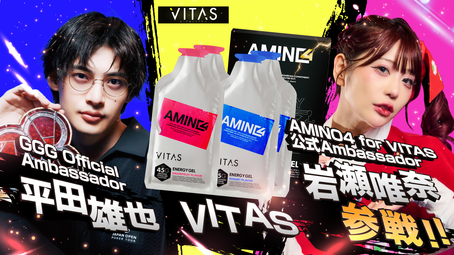 プロテイン VITAS様から協賛:AMINO4 /1箱、シェイカー1つ、個包装数点