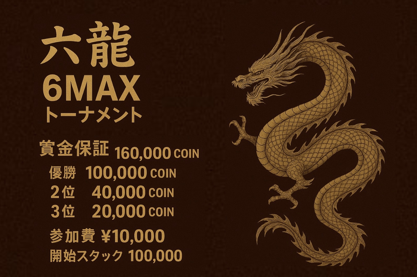 ※テーブルバランスを考慮してレイトレジスト以降残り人数7名様で1テーブルとさせていただき、6名様となったタイミングでファイナルテーブルとしてテーブルのリシートをさせていただきます。