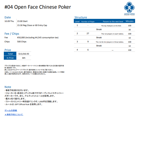 店舗名 | JAPAN OPEN POKER TOUR |