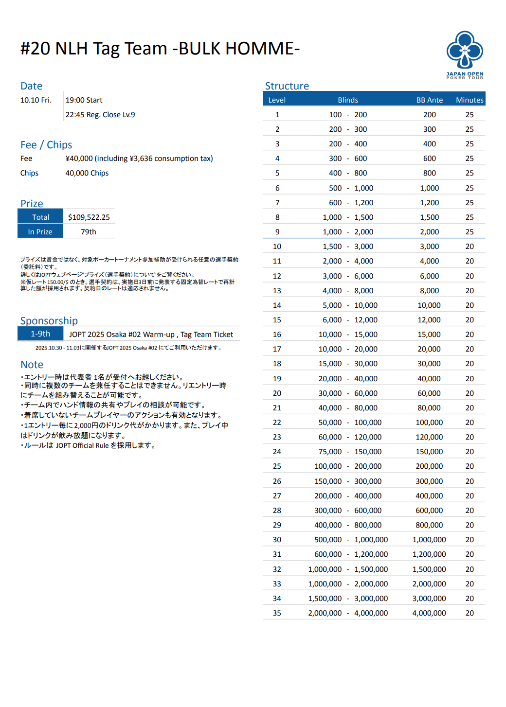 JOPT 2025 Osaka #02 | 10/30 - 11/3 |