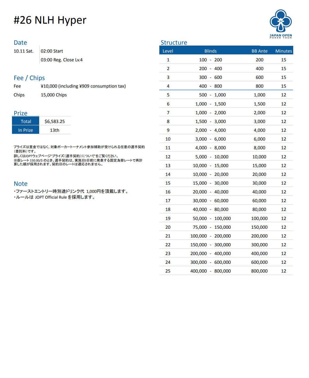 JOPT 2025 Osaka #02 | 10/30 - 11/3 |