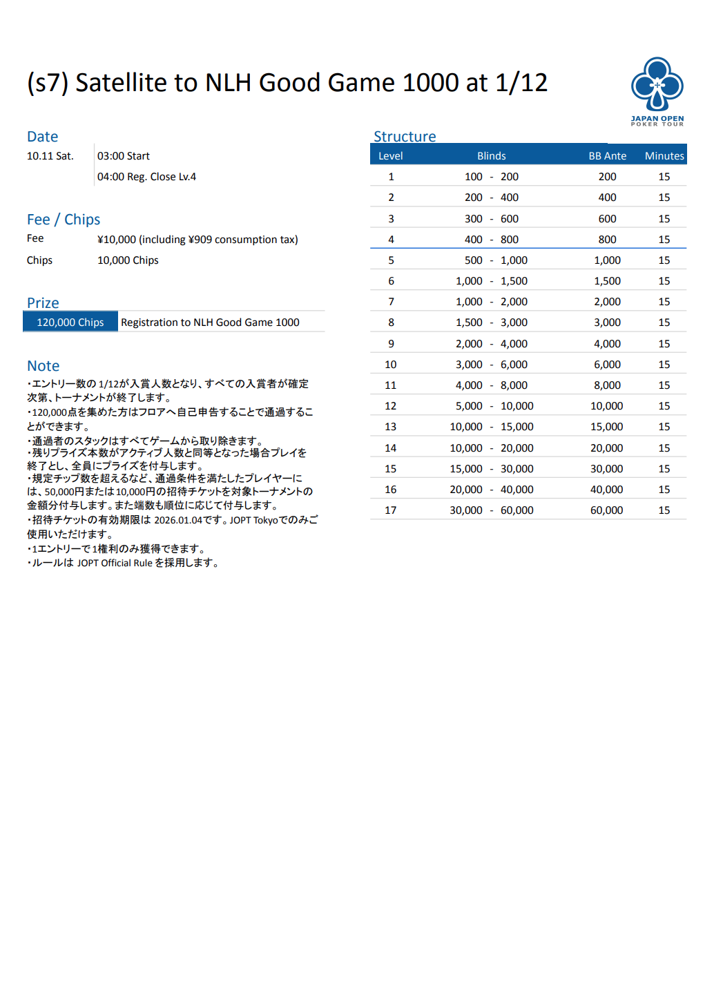 JOPT 2025 Osaka #02 | 10/30 - 11/3 |