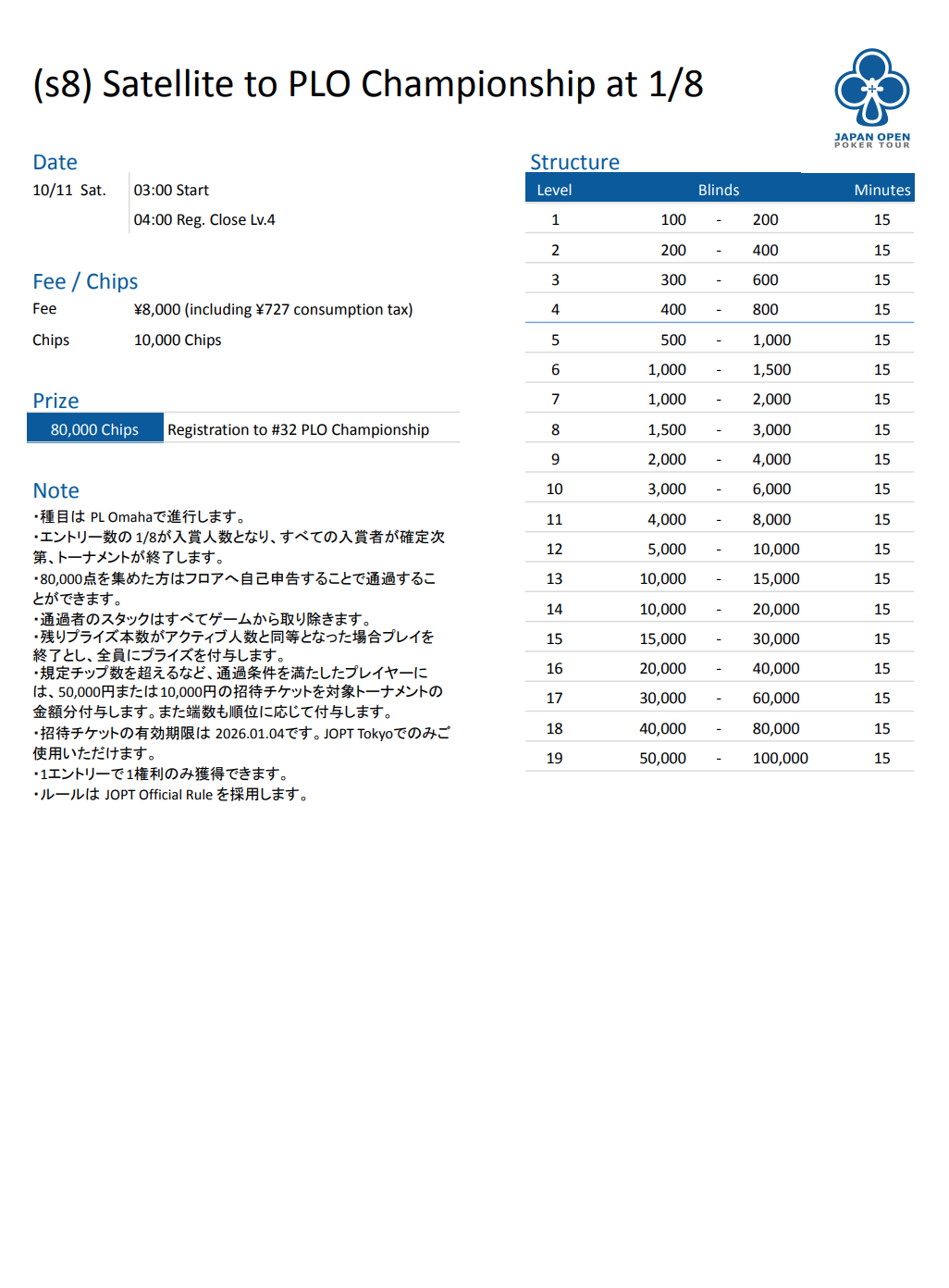 JOPT 2025 Osaka #02 | 10/30 - 11/3 |