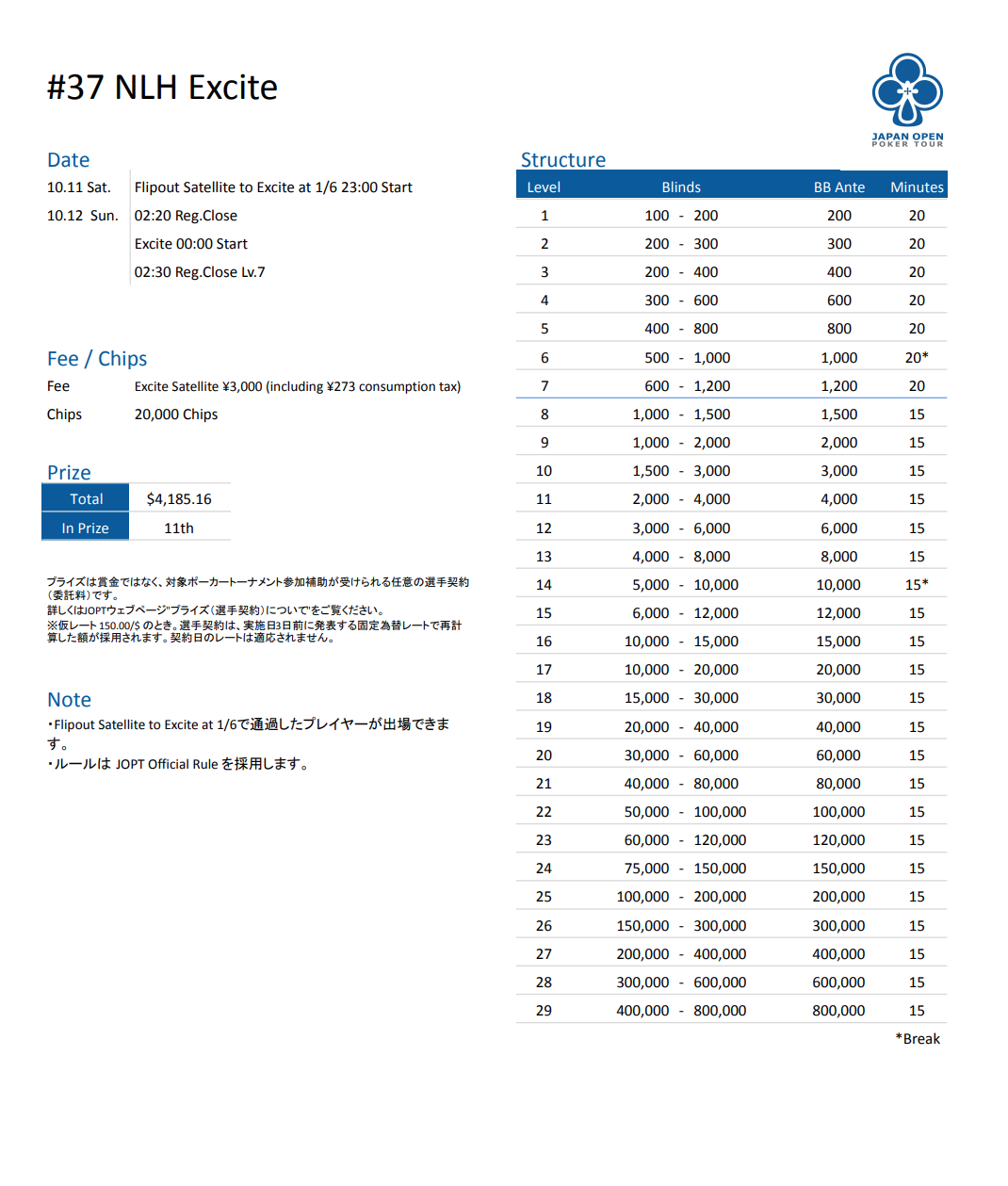 店舗名 | JAPAN OPEN POKER TOUR |