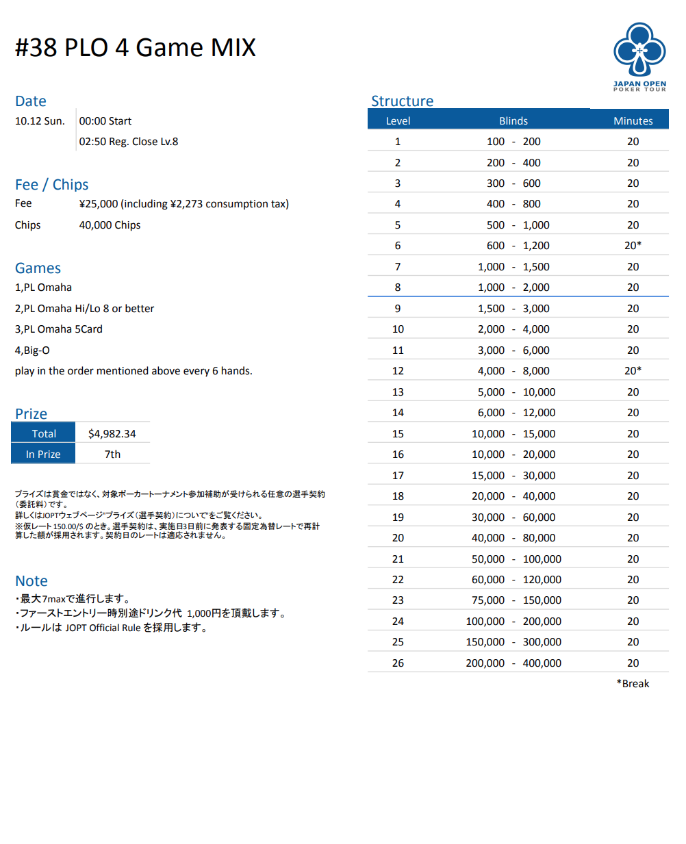 JOPT 2025 Osaka #02 | 10/30 - 11/3 |