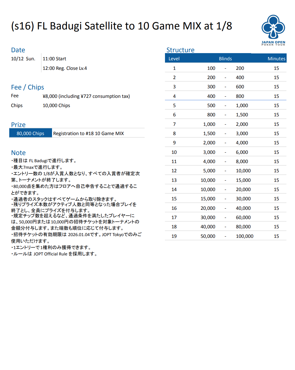 JOPT 2026 Tokyo #01 | 2025/12/27 - 2026/1/4 |