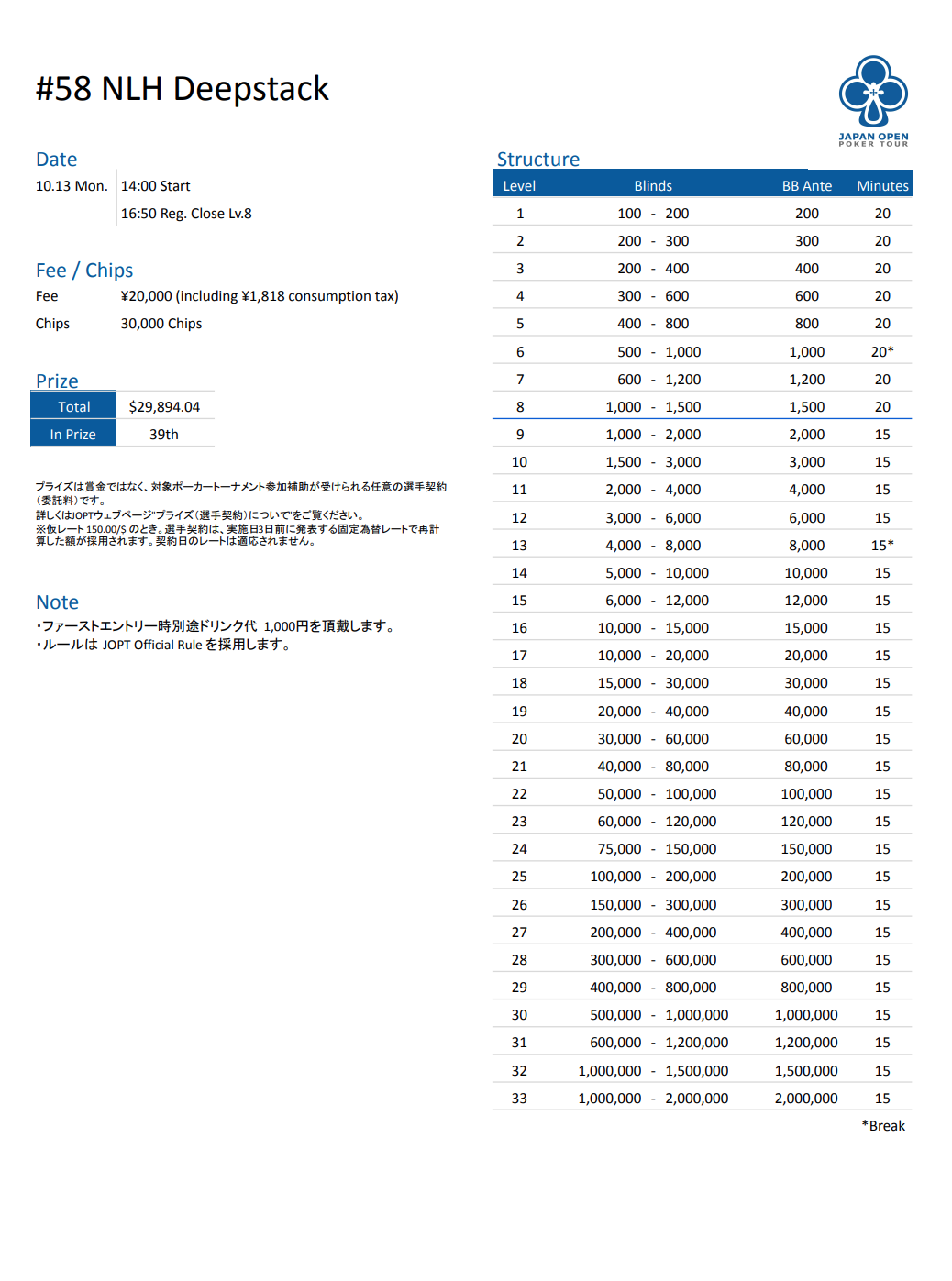 JOPT 2025 Osaka #02 | 10/30 - 11/3 |