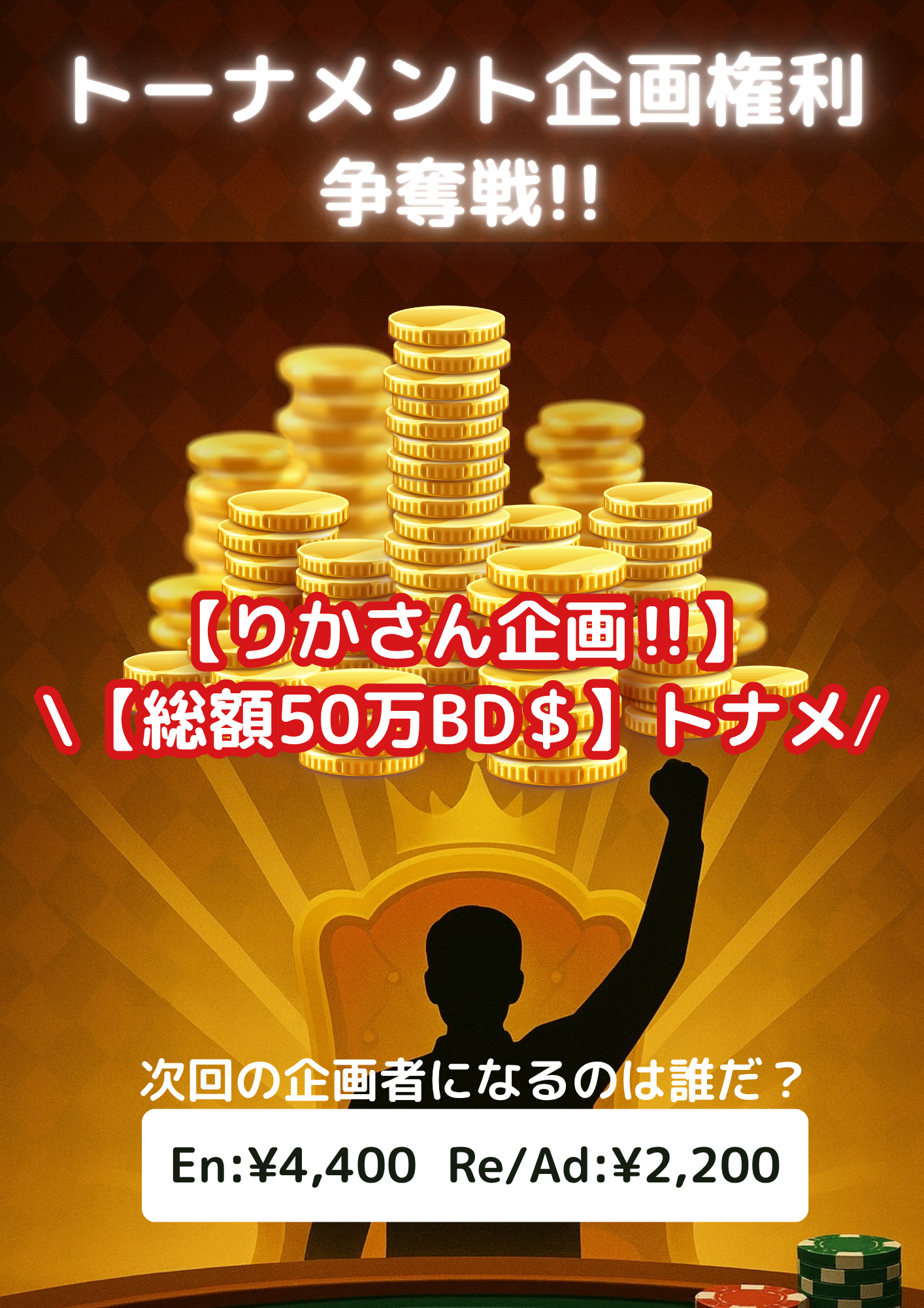 翌月に開催されるトーナメントの企画権利を獲得できるイベントです!!