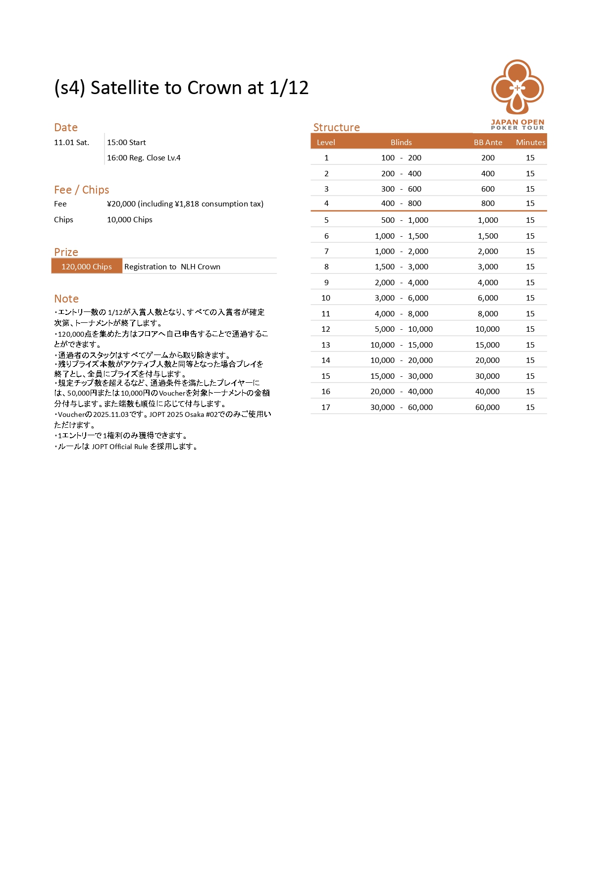 公式ページ | https://japanopenpoker.com/wp-content/uploads/2025/JOPT_2025_Osaka_02/Players_Guide_JP.pdf |