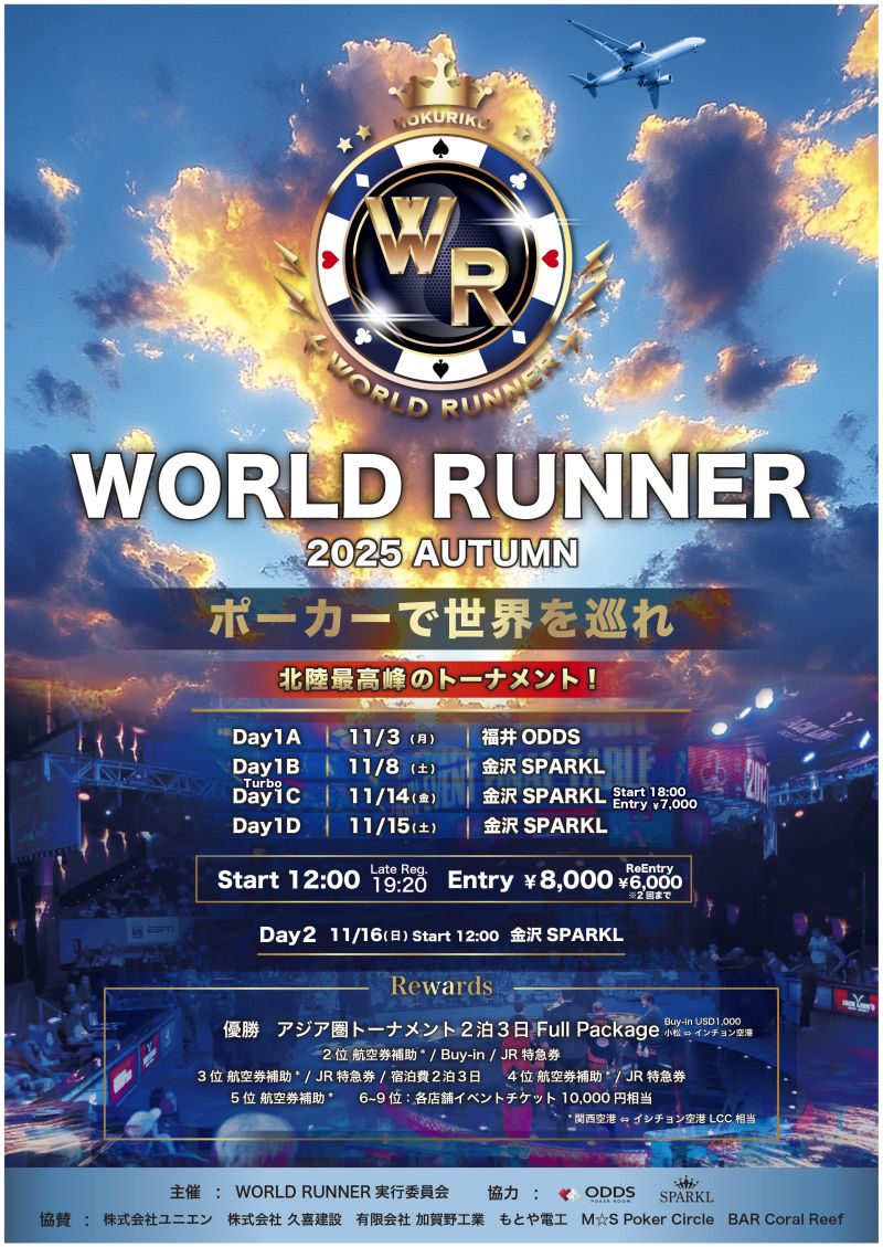 | 11/1(土) | 17:00 | 【JOPT Osaka】#21 NLH Crown | JAPAN OPEN POKER TOUR |