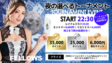 1卓限定66,000保証【WEBコイン、+POINT、FELLOWSポイント、】選べるトーナメント!レイトレジスト25時20分