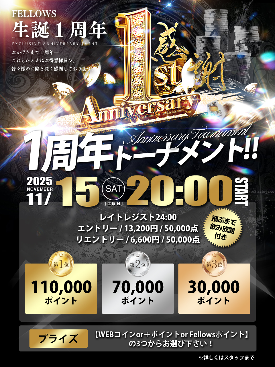 | 11/16(日) | 16:50 | 【JOPT30枠】超バズーカサテライト | Casino Live Tokyo |
