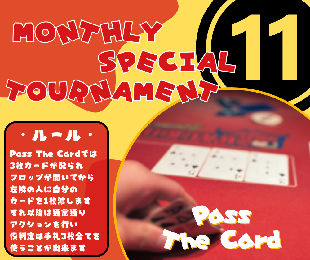| 11/18(火) | 18:00 | 【SPADIE Couple Tag Team招待付き!】CLT Original Tournament | Casino Live Tokyo |