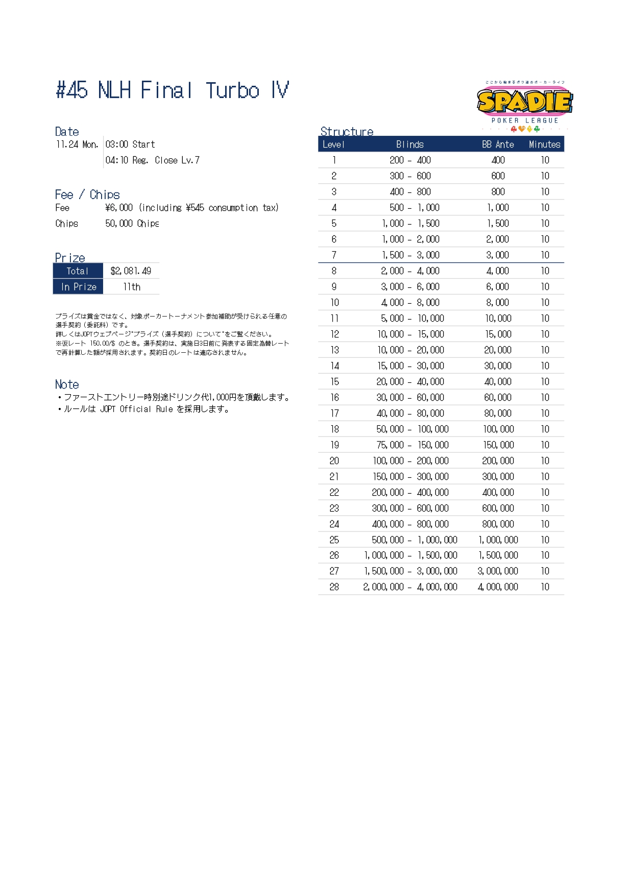 | 公式ページ | https://pokerguild.jp/spadie/ |