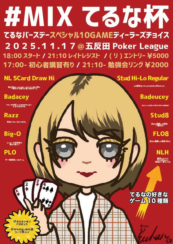 | 11/15(土) | 17:30 | ルカ店長就任トーナメント 4K | KKLIVE POKER SHIBUYA |