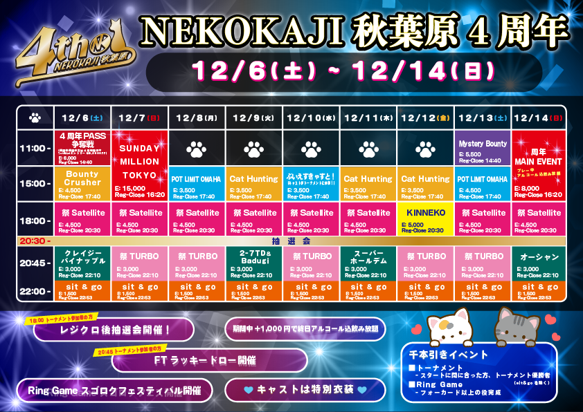 | 12/8(月) | 18:00 | 【♠︎SPADIE】Daily NLH 4K | 秋葉原カジノクエスト |