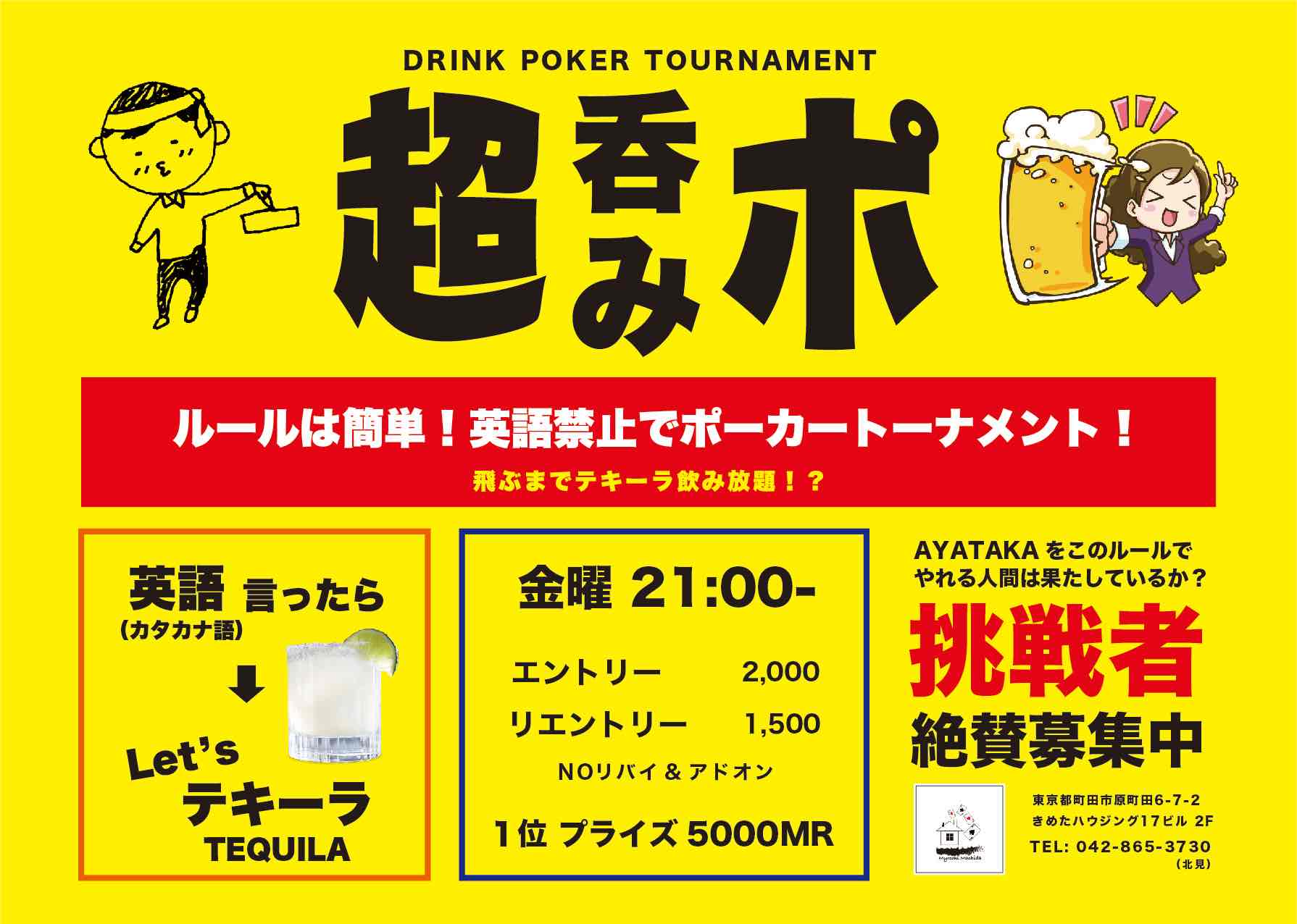 お酒を飲まない方の罰ゲームはBB分をPOTに入れていただきます!