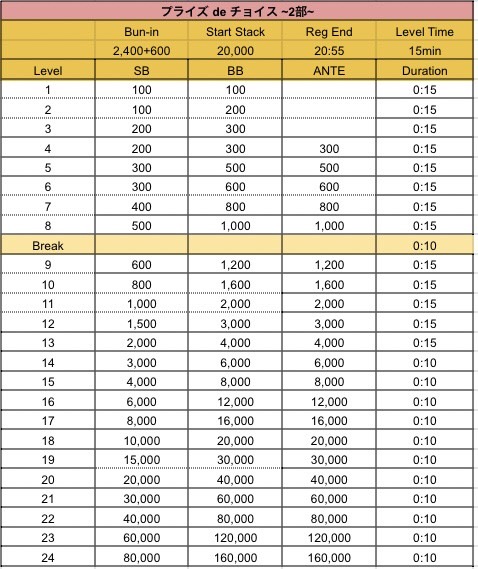 スタートスタック:20,000点 20分ブラインド