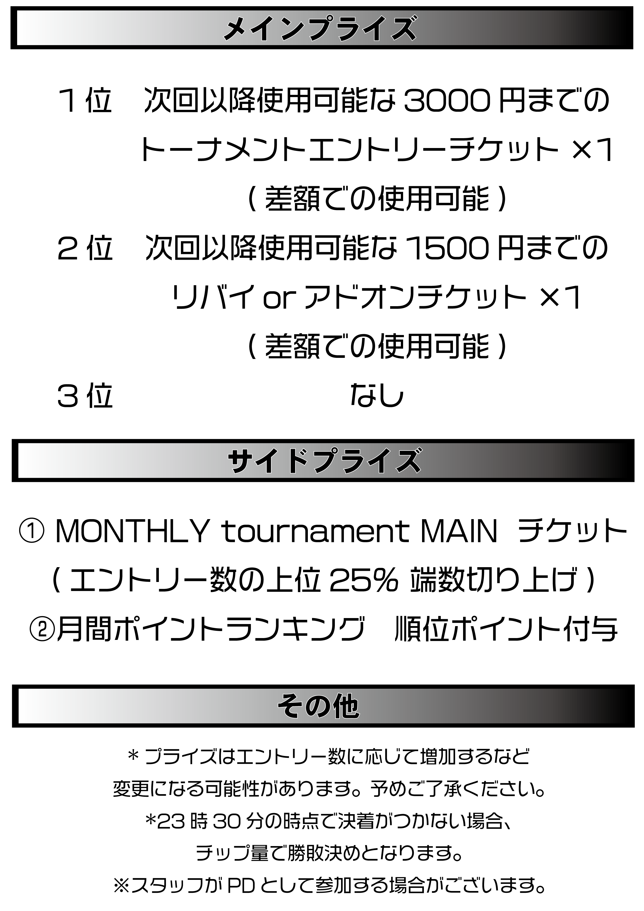 マンスリーチケットトーナメント【月間ポイント2倍】