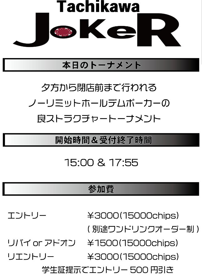 | 12/16(火) | 15:30 | 【♠︎SPADIE】Daily NLH 2K | 秋葉原カジノクエスト |
