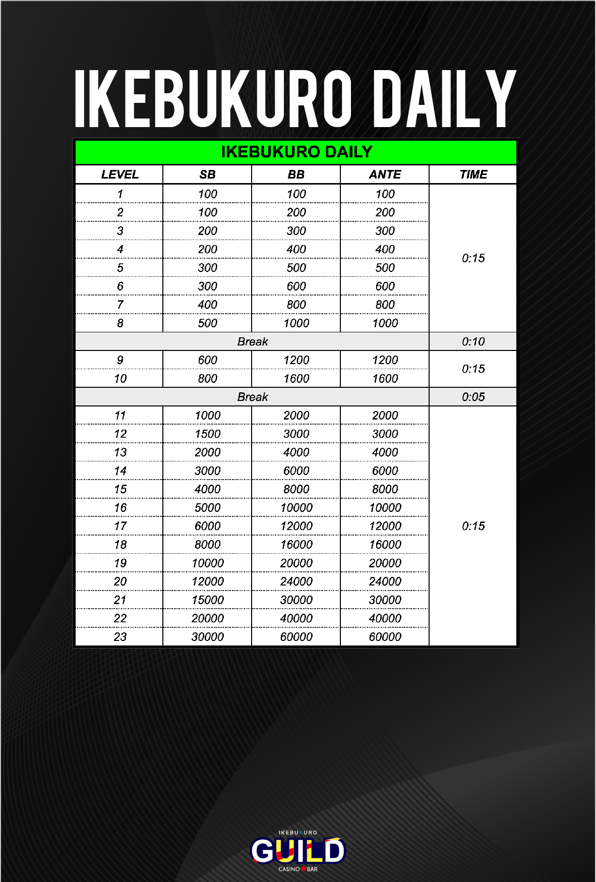※ただし閉店時間の状況等により、TD判断でブラインド上昇させる場合がございます。