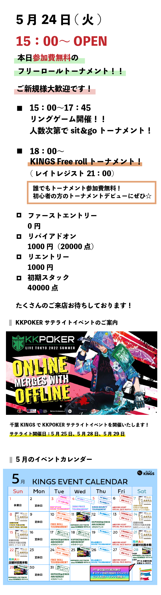 【トーナメント参加費無料!!】KINGS Free roll トーナメント!