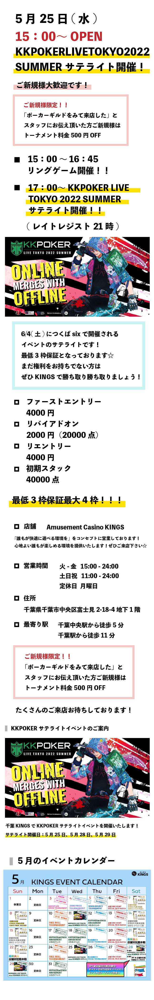 【☆最低3枠保証☆最大4枠☆】KKPOKERLIVETOKYO2022SUMMERサテライト