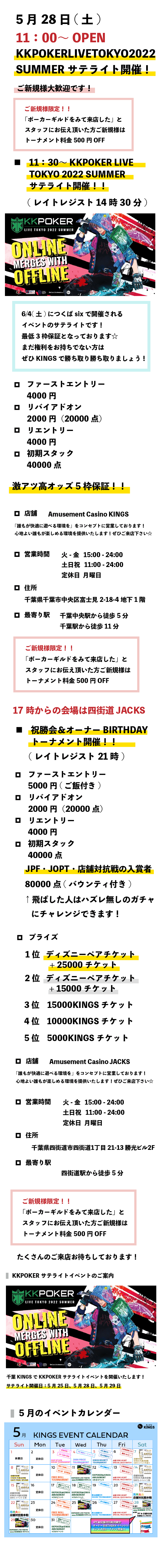 | 11/14(金) | 17:30 | 【JOPT 21枠】バズーカーサテライト8K | KKLIVE POKER SHIBUYA |