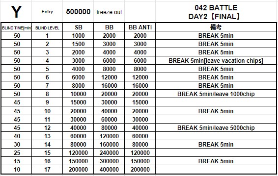 | ゲーム | 30,000点 / ノーリミット / テキサスホールデム / normal / normal |