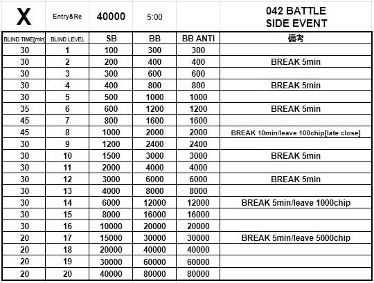 | ゲーム | 30,000点 / ノーリミット / テキサスホールデム / normal / normal |