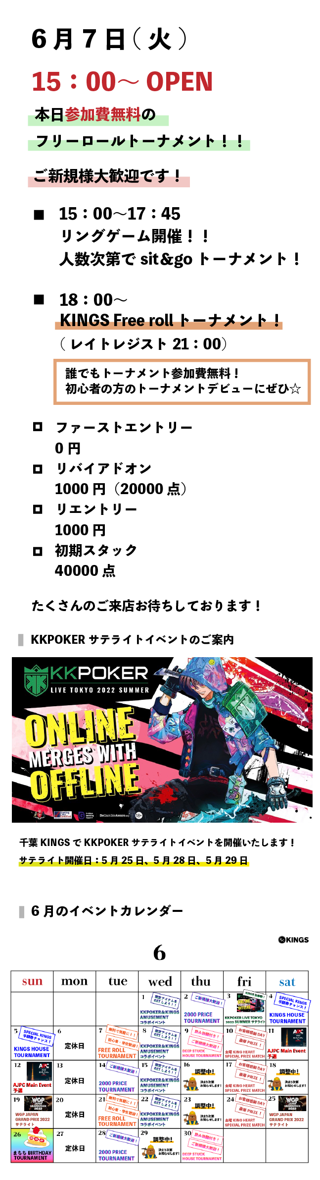 【トーナメント参加費無料!!】KINGS Free roll トーナメント!