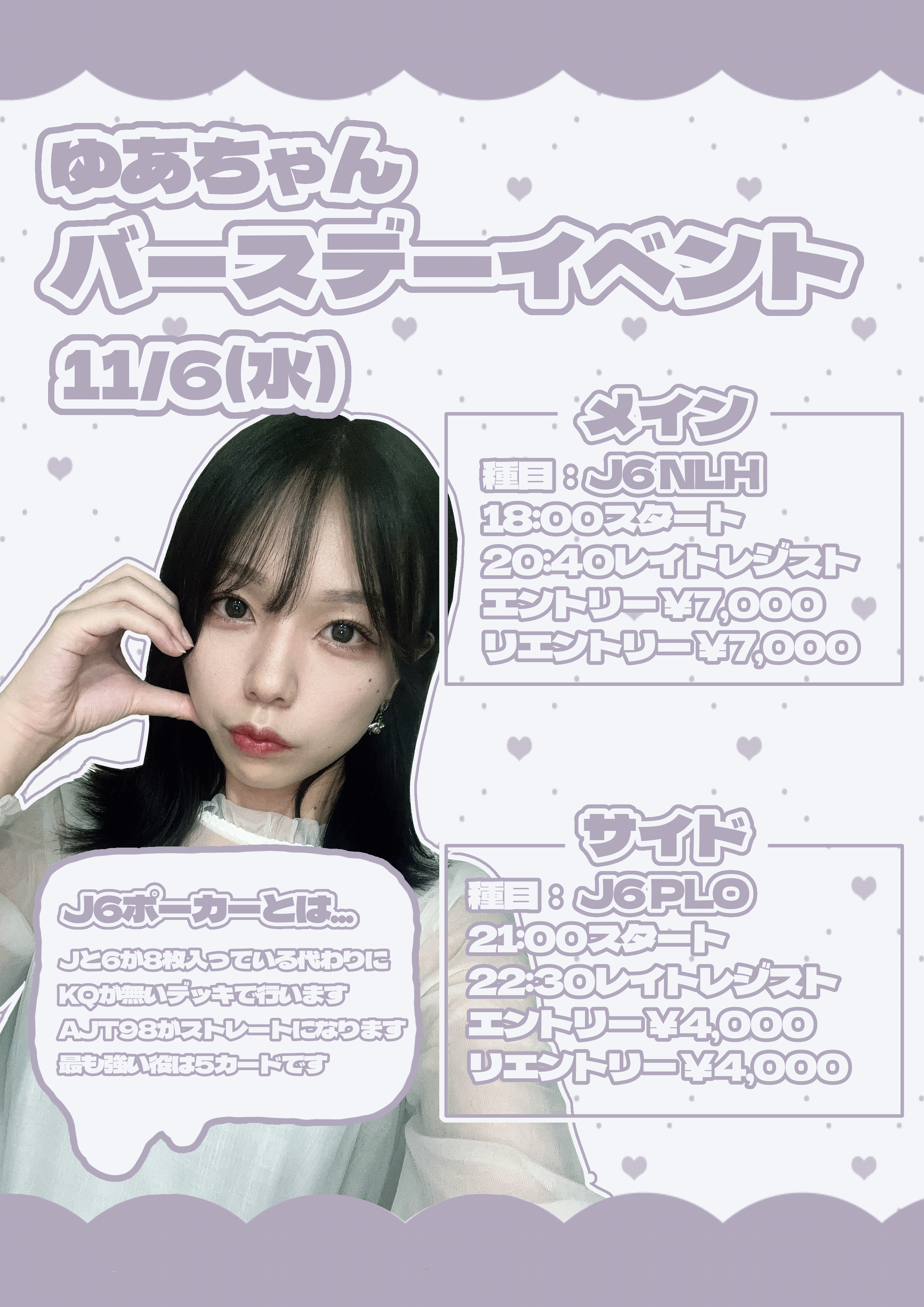 | 11/22(土) | 13:30 | 【♠SPADIE】『昼下がりのポーカー Long 』 | アキバギルド |