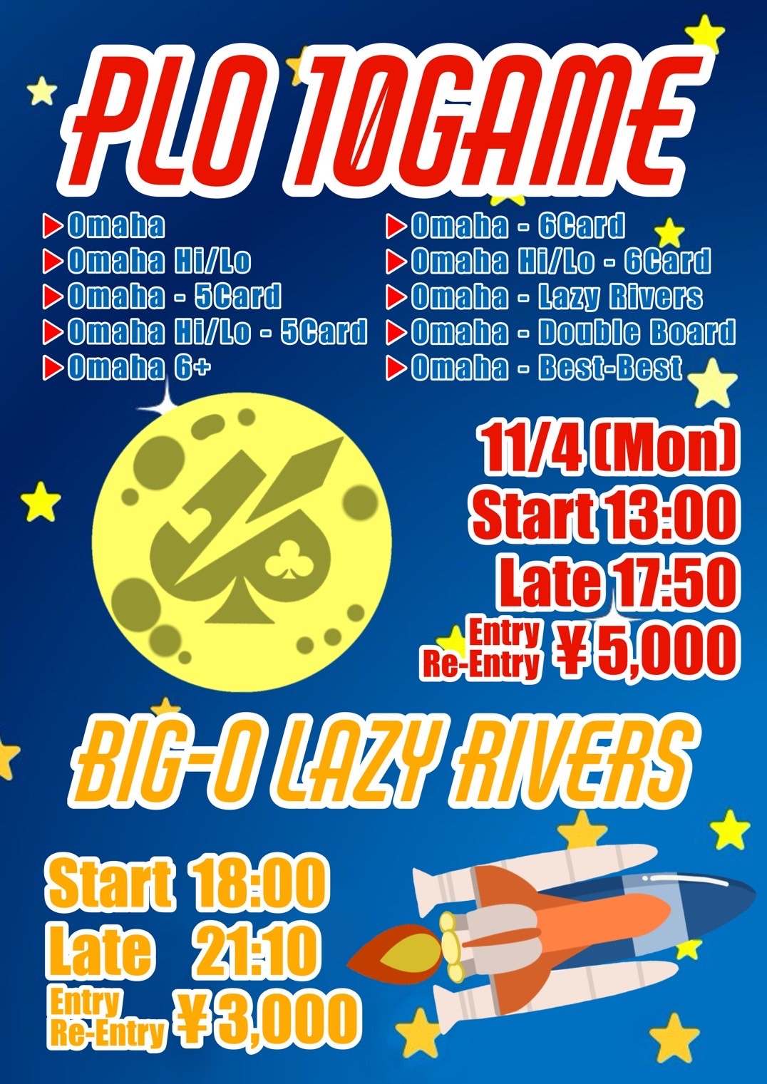 | 11/22(土) | 18:00 | 【SPADIE FINAL 39th】#26 NLH Lucky Clover -Mystery Bounty- | JAPAN OPEN POKER TOUR |