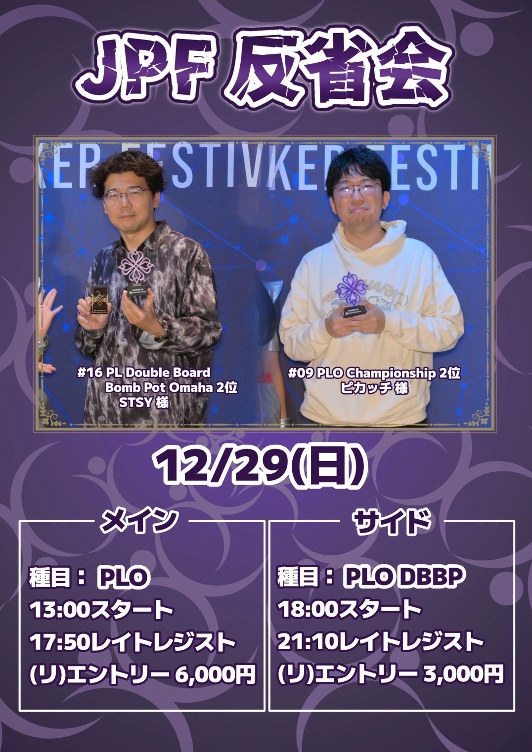| 11/22(土) | 13:00 | 【SPADIE FINAL 39th】#24 NLH Deepstack | JAPAN OPEN POKER TOUR |