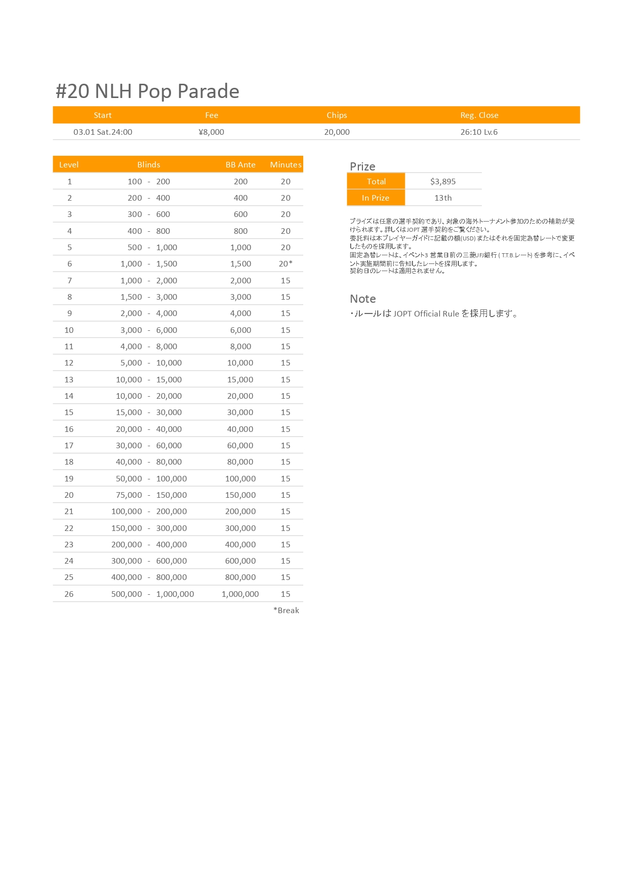 | ゲーム | 20,000点 / ノーリミット / テキサスホールデム / normal / Others |