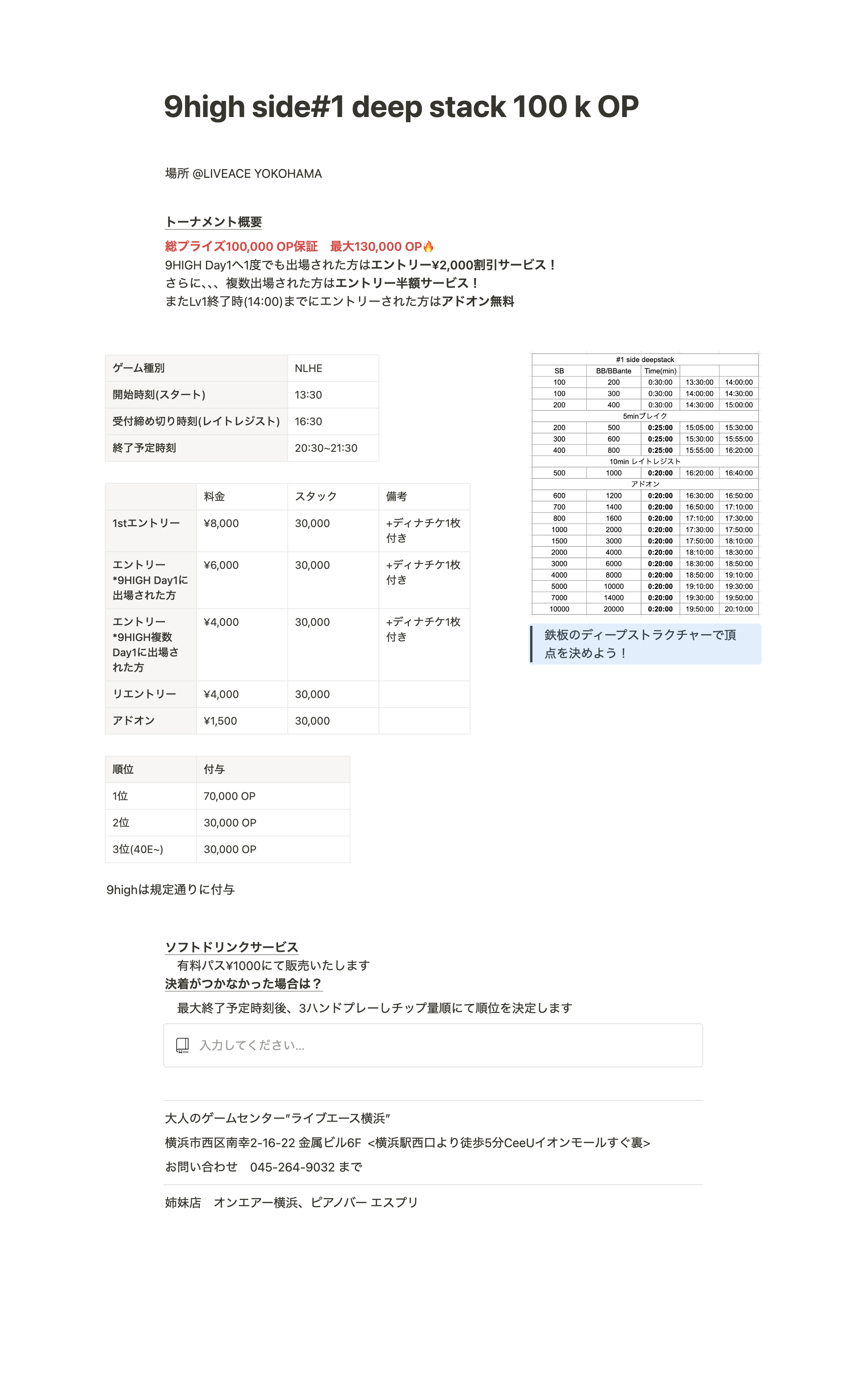 予定が決まっていない人におすすめ!最大総プライズ130K DeepStack レイト16:30
