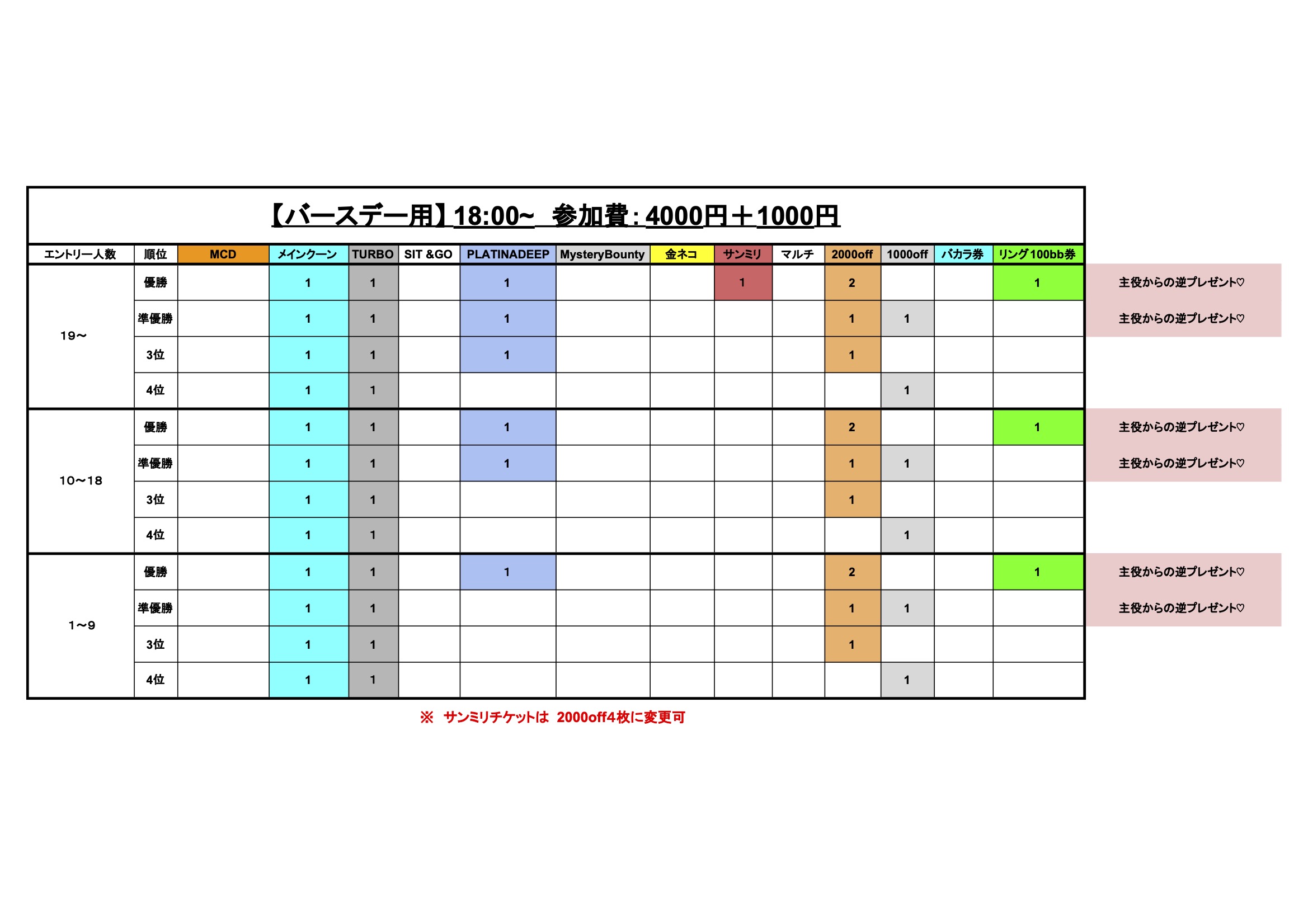 ♡PLATINA DEEP・・・土日祝11:00〜開催されるトーナメントに無料でエントリーできます