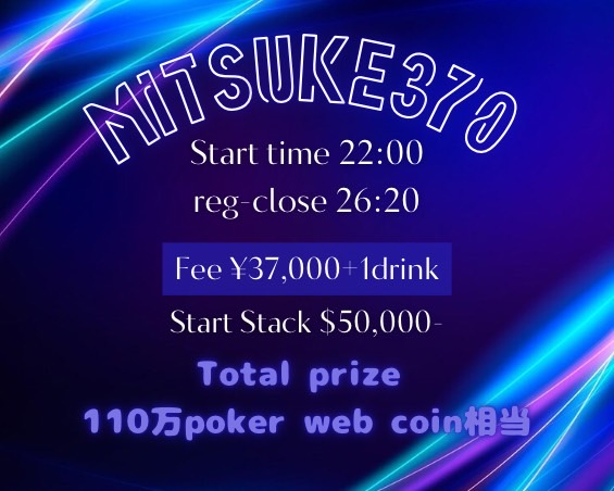 | 12/15(月) | 18:00 | 【JOPT 15Ticket】メガサテライト | Casino Live Tokyo |