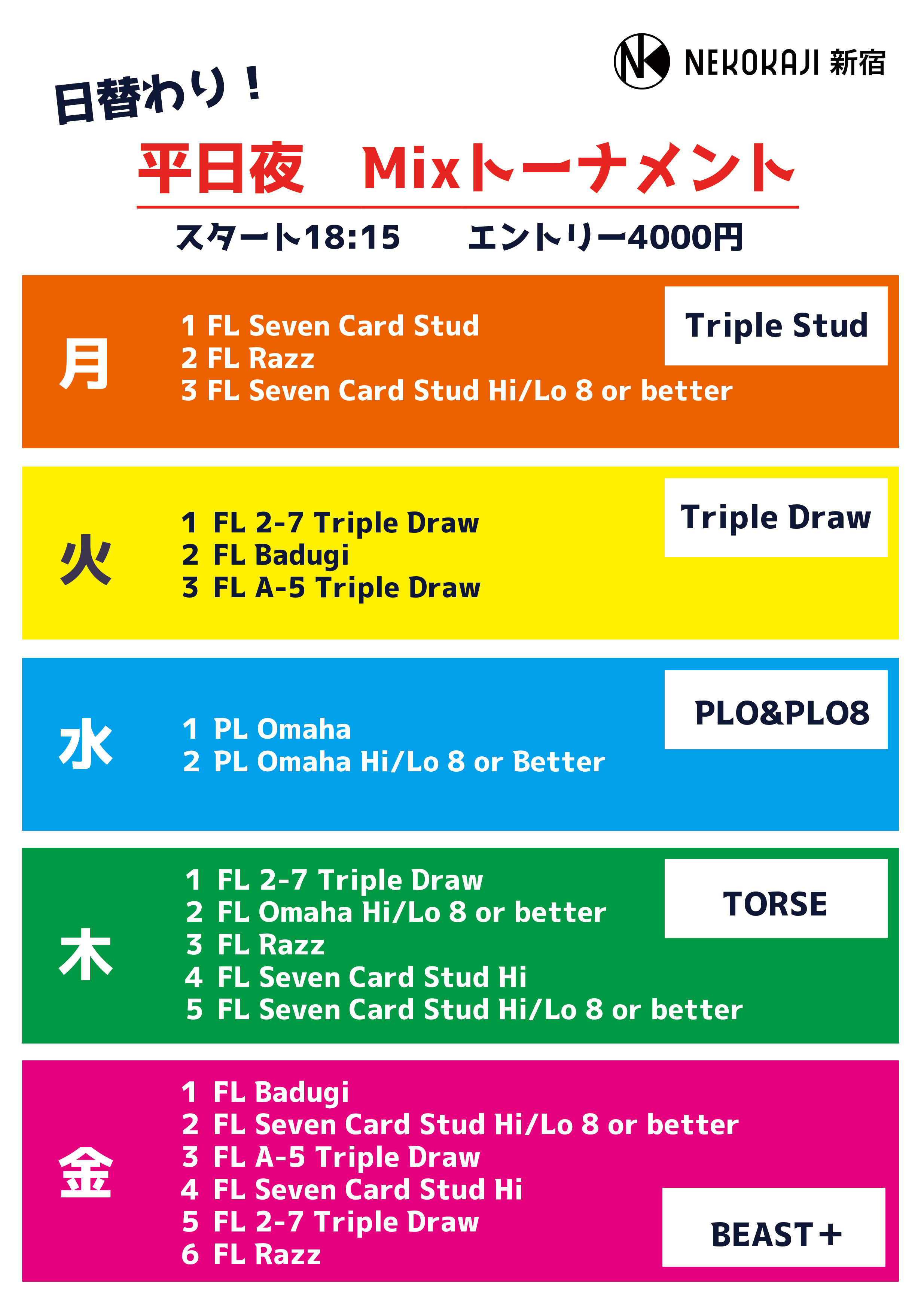 日替わり!平日のMixトーナメント!