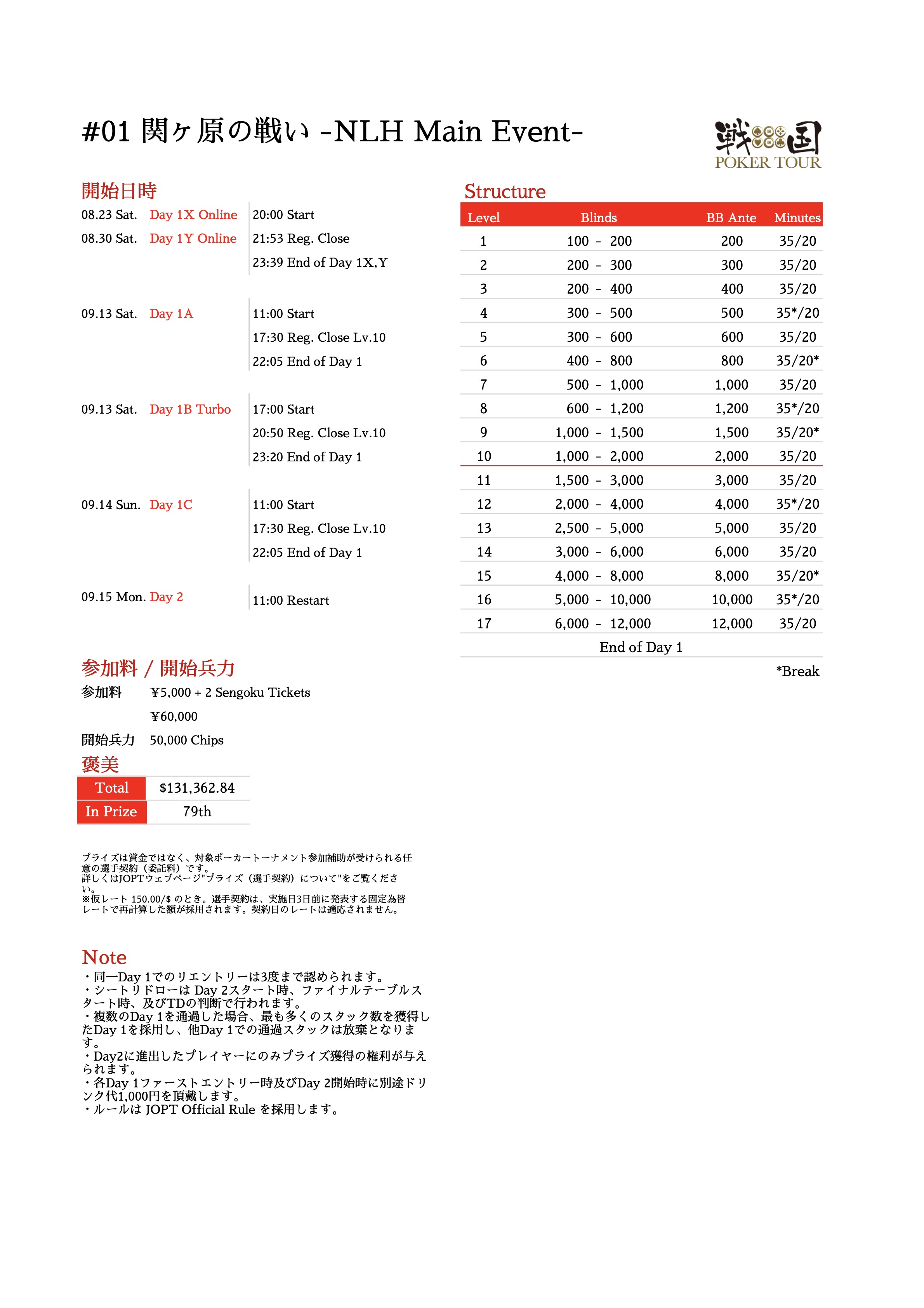 3. Main Event参加プレイヤーとサイドイベントの上位プレイヤーは、氏名を関連するサイト等で公開することに同意する。